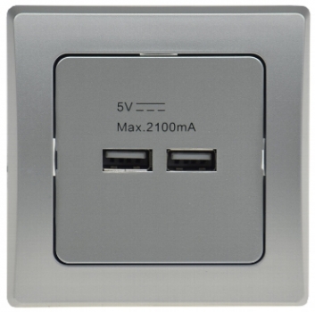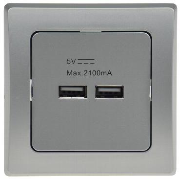 Diese Delphi USB-Ladedose hat gleich zwei 5V= Ladebuchsen integriert. Über die können Sie z.B. gleichzeitig Smartphone und Tablet aufladen. • geeignet zur Kombination mit allen weiteren Elementen der DELPHI Serie • USB-Buchsen 5V=, gesamt max. 2A (z.B. 2x 1A, 1x 2A, 1x 1,5A + 1x 0,5A...) • StandBy Verbrauch nur 0,09W • Einbautiefe 37mm • Farbe silber